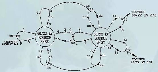 圖1.新加坡22千伏中壓配電網花瓣式接線