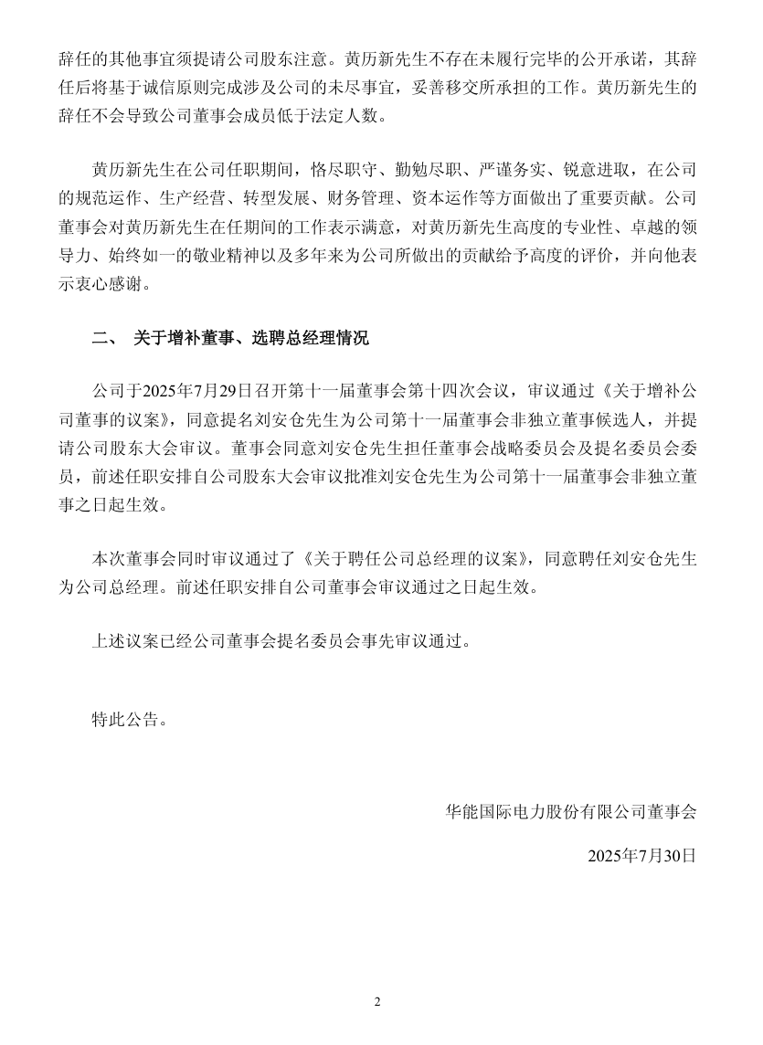公司于7月29日召開第十一屆董事會第十四次會議,審議通過《關于增補公司董事的議案》,同意提名劉安倉先生為公司第十一屆董事會非獨立董事候選人,并提請公司股東大會審議。董事會同意劉安倉先生擔任董事會戰略委員會及提名委員會委員,前述任職安排自公司股東大會審議批準劉安倉先生為公司第十一屆董事會非獨立董事之日起生效。