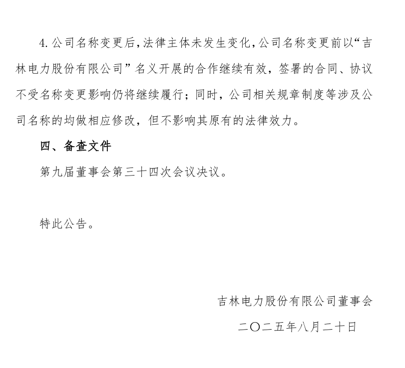 吉電股份發(fā)布公告稱,公司于8月20日召開第九屆董事會(huì)第三十四次會(huì)議,審議通過了《關(guān)于變更公司名稱及證券簡(jiǎn)稱的議案》,擬變更公司名稱為“國(guó)家電投集團(tuán)綠色能源發(fā)展股份有限公司”,擬變更證券簡(jiǎn)稱為“電投綠能”。