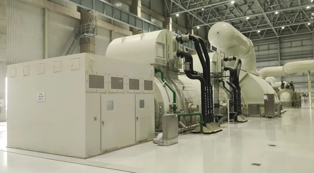 汽輪發電機設備采用哈電集團電機公司研制的660兆瓦等級水氫氫冷卻、自并勵靜止勵磁汽輪發電機,通過氣隙取氣軸向通風、定子線棒楔下波紋板彈性防松、彈簧板軸向滑移、雙層匝間絕緣搭接等技術,使其具備優異的快速啟停能力和靈活變負荷性能,能更好適應當前電力系統深度調峰的需求,并顯著提高機組運行靈活性和電網調節能力。