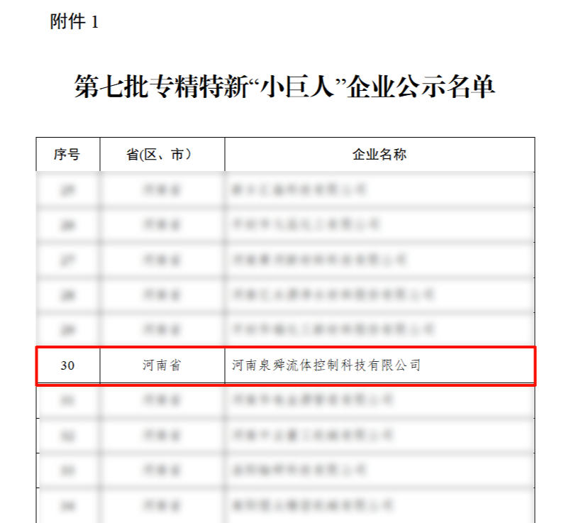 今年正值泉舜流控建廠20周年,此次獲得國家級專精特新"小巨人"企業認定,是對公司二十年如一日堅持技術創新、專注主業發展的最好肯定。從省級“專精特新”到國家級“小巨人”,泉舜流控的晉級之路印證了其技術實力與發展潛力。專業化、精細化、特色化、新穎化——這四大特征在泉舜流控的發展軌跡中得到完美詮釋。