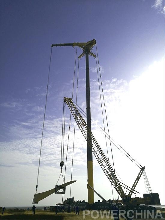 在整個吊裝過程中,現場施工人員嚴格按照安全和質量施工要求,在地表溫度高達50攝氏度的情況下,施工人員頭頂烈日,不畏酷暑,科學組織,積極應對,每天奔波于風機吊裝現場。通過全體人員的共同努力,在合同規定時間內完成了全部吊裝工作。中國電建人的高超技藝和“鐵軍”精神讓OES和設備廠家紛紛豎起了大拇指,再一次提升了中國電建的品牌。