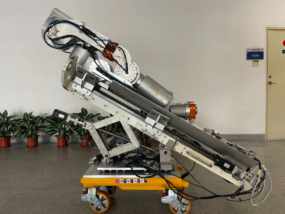 這臺(tái)“蒸汽發(fā)生器堵板拆裝機(jī)器人”,是專為核電“心臟血管”密封封堵的“微型工程師”,能輕松穿過(guò)人孔,全自動(dòng)完成堵板抓取、轉(zhuǎn)運(yùn)對(duì)位、擰螺栓、膠囊密封。目前已在大亞灣核電站成功應(yīng)用。