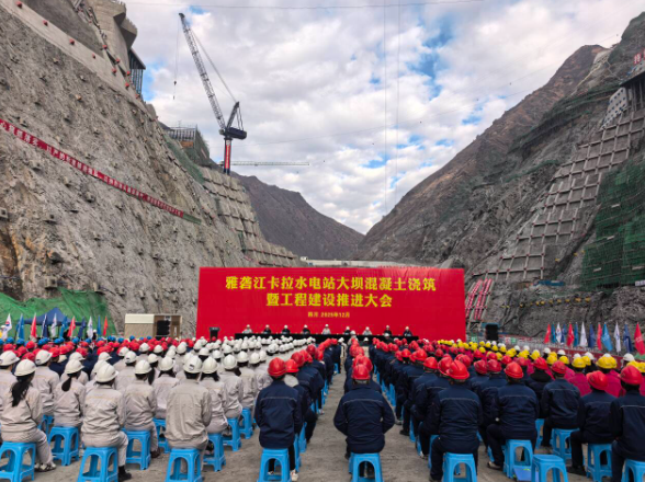 12月30日,雅礱江卡拉水電站大壩混凝土澆筑暨工程建設推進大會順利召開,水電七局參建的雅礱江卡拉水電站大壩首倉碾壓混凝土開始澆筑,標志電站從基坑開挖階段正式轉為大壩混凝土澆筑階段。