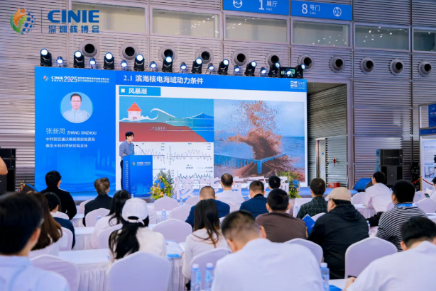 南京水利科學(xué)研究院受邀參加,并在大會(huì)上充分展示了自九十年代以來(lái)在核電工程水源保障、環(huán)境評(píng)價(jià)和安全運(yùn)維等方面取得的科研成就,特別是通過(guò)論壇報(bào)告、路演、沙盤、多媒體視頻、展板等多種形式,展示了近年來(lái)開展的核電冷源安全保障及取水方案優(yōu)化關(guān)鍵技術(shù)、核電溫排水影響精細(xì)預(yù)測(cè)與評(píng)估關(guān)鍵技術(shù)、濱海電廠排水混合井消泡關(guān)鍵技術(shù)、核電泵房水流特性和泥沙淤積物理模型驗(yàn)證、核電廠乏燃料干法貯存系統(tǒng)、核電海工建筑物波浪物理模型試驗(yàn)評(píng)估實(shí)踐、核電取水泥沙積淤治理和清淤關(guān)鍵技術(shù)、陸海洪水疊加及廠址防洪排澇一體化計(jì)算模擬方法、鋼殼混凝土結(jié)構(gòu)脫空缺陷定量檢測(cè)技術(shù)等十余項(xiàng)創(chuàng)新成果。
