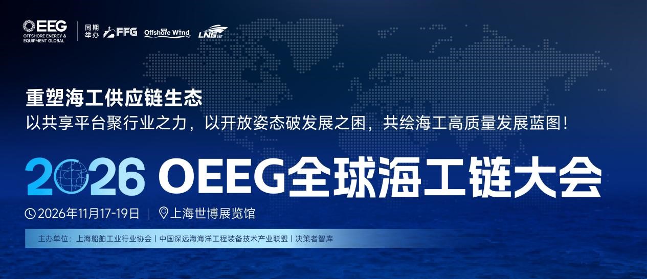 由上海船舶工業行業協會、中國深遠海海洋工程裝備技術產業聯盟、決策者智庫聯合主辦的2026 OEEG全球海工鏈大會正式定檔,將于11月17-19日在上海世博展覽館盛大舉行。