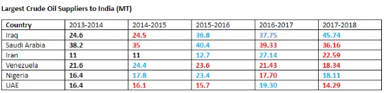 在歷史性的發(fā)展中,伊拉克推動(dòng)沙特阿拉伯成為印度最大的原油供應(yīng)國,印度是世界上增長最快的石油消費(fèi)國,上一財(cái)政年度(2017-18)。伊拉克的供應(yīng)增加 - 對印度的原油組合造成重大影響 - 主要?dú)w因于印度煉油商對較重等級原油的日益增長的饑餓以及沙特阿拉伯決定對2017年1月石油輸出國組織會(huì)議決定的減產(chǎn)過度確認(rèn)。