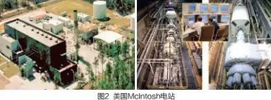第二座是于1991 年投入商業(yè)運行的美國McIntosh 電站(圖2)。其儲氣洞穴在地下450 米,總?cè)莘e達5.6×105m3,儲氣壓力約為75bar。該電站壓縮機功率為50MW,膨脹機功率為110MW,可實現(xiàn)連續(xù)41 小時充氣和26 小時發(fā)電,機組從啟動到滿負荷約需9 分鐘, 系統(tǒng)效率為54%。另外,日本于2001 年在北海道空知郡投運了上砂川町2MW 壓縮空氣儲能示范項目。其余國家如瑞士、法國、英國、意大利、俄羅斯、以色列、芬蘭、南非和韓國等國家也在積極開發(fā)壓縮空氣儲能電站。