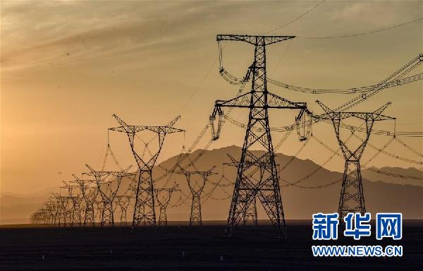 ↑位于新疆鄯善縣境內的一處750千伏輸電工程(9月21日攝)。 新華社記者趙戈攝