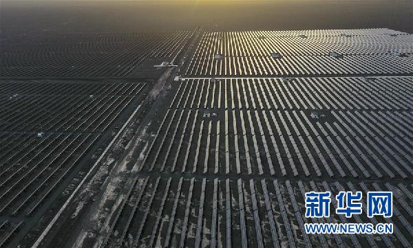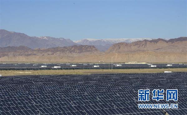 ↑位于新疆哈密市的石城子光伏電站(9月20日攝)。 新華社記者趙戈攝