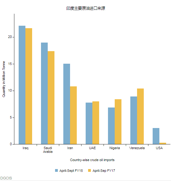 按價(jià)值計(jì)算,印度僅在9月份就從伊朗進(jìn)口了價(jià)值9.1億美元的原油,比去年同月進(jìn)口的原油價(jià)值5億7千萬(wàn)美元增加了60%。累計(jì)從2018年4月至9月期間從伊朗進(jìn)口的石油價(jià)值從去年同期的38.4億美元增加一倍多,達(dá)到77.4億美元。