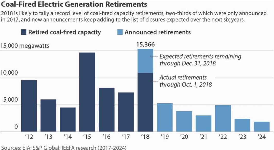 IEEFA:美國電力供應商將在2018年關閉更多的燃煤發電容量,將達歷史最高