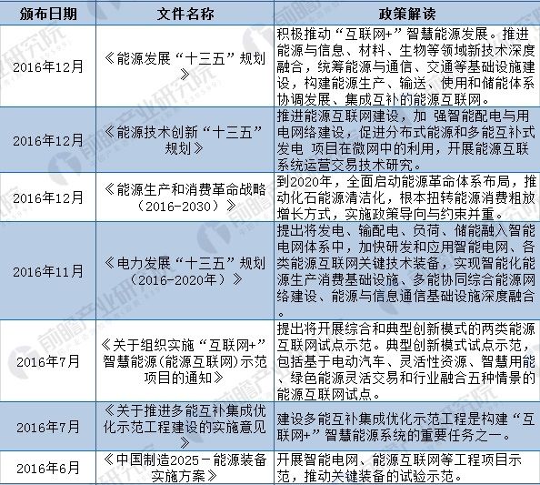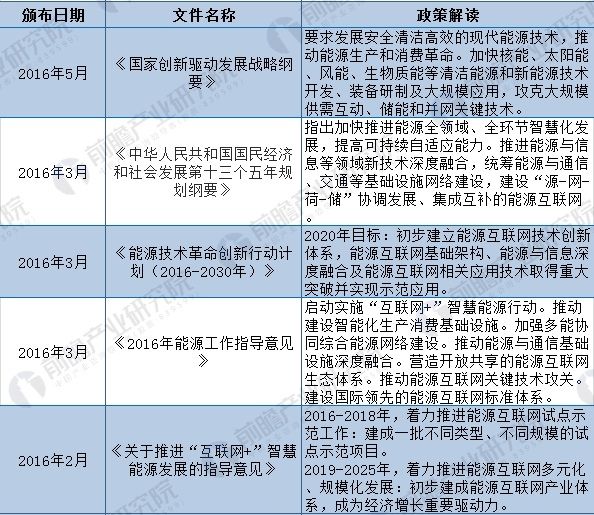 圖表2:截至2018年全國(guó)能源互聯(lián)網(wǎng)行業(yè)政策匯總(一)