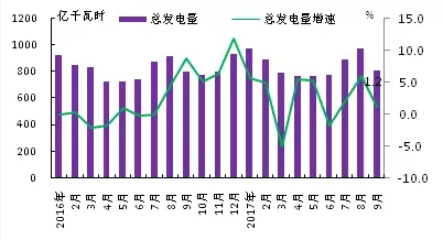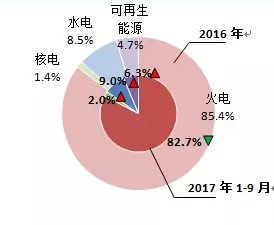 ⊙火電發電量為6433億千瓦時,同比回落1.8%,占總發電量的82.7%,份額比2016年減少2.7個百分點;