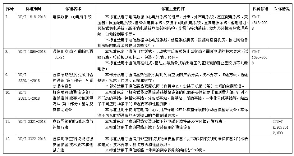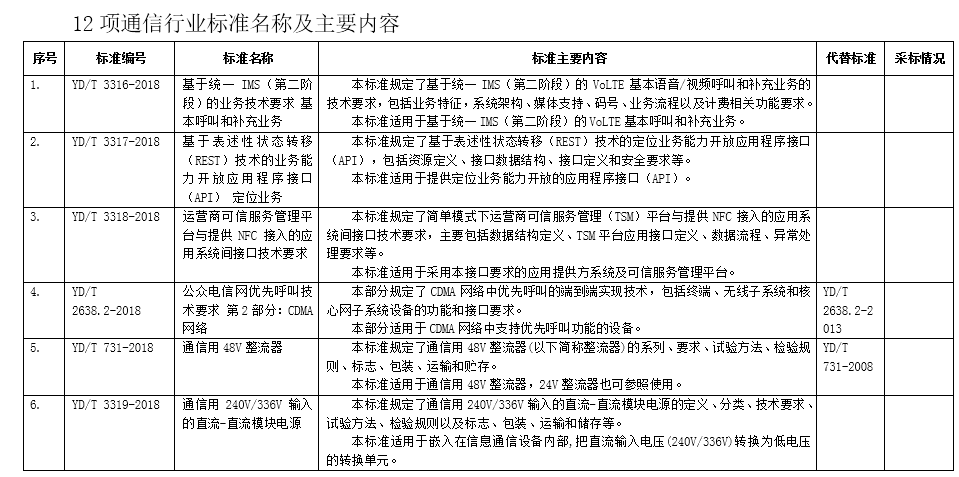 附件: 12項通信行業(yè)標準名稱及主要內容