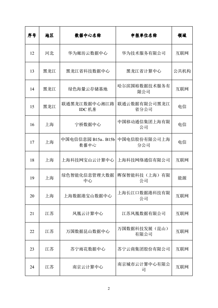 附件:國家綠色數據中心名單(第一批)