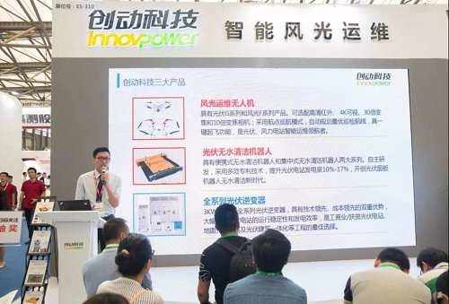 創動科技一直緊隨智能化管理理念,致力于智能風光運維及新能源發電的推廣與應用。驚艷升級的風光運維無人機、光伏無水清潔機器人、工商業/扶貧專用逆變器、全系列逆變器,科技魅力折服了臺下的觀眾們。